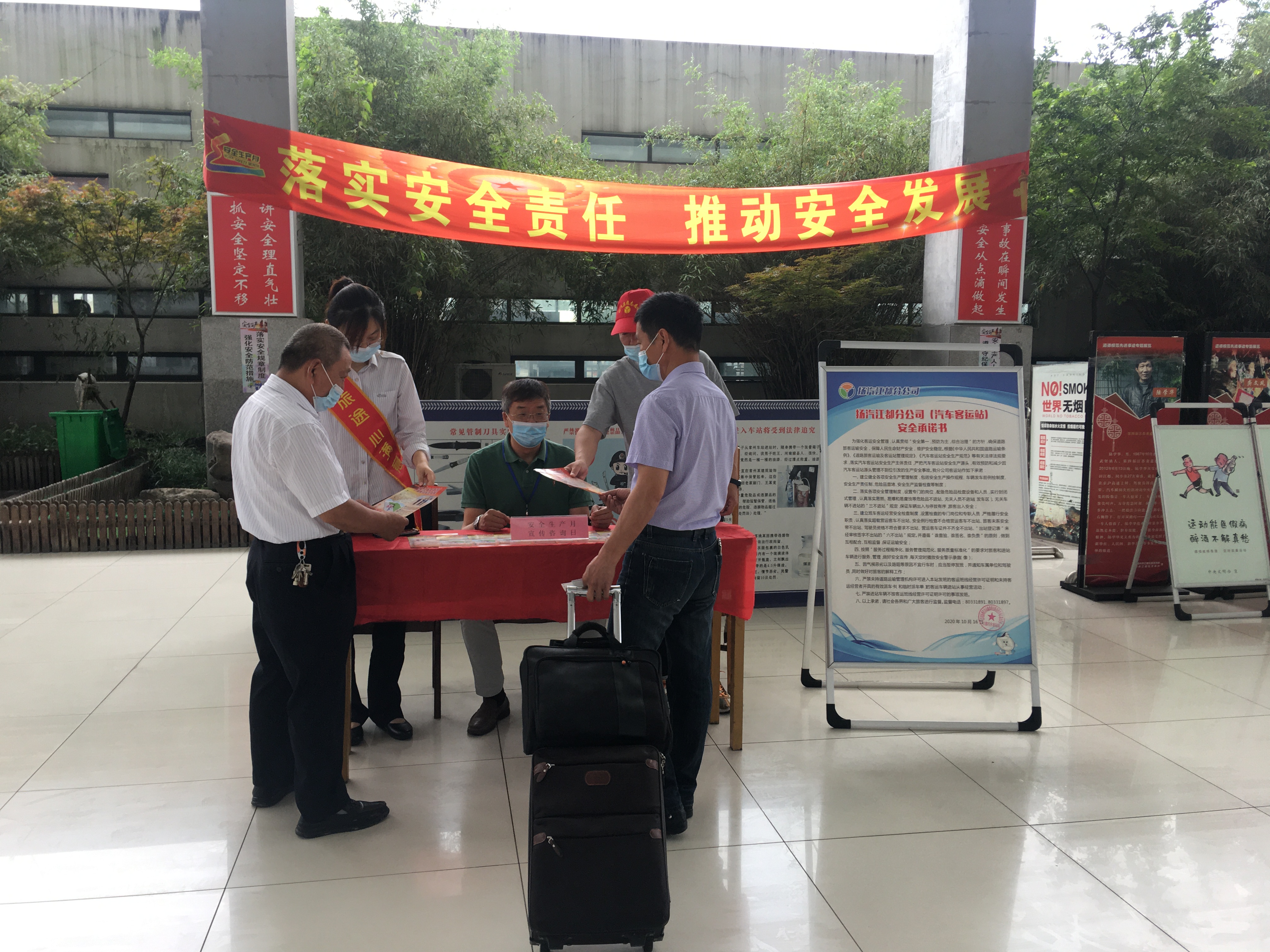 6月17日,集團(tuán)所屬汽車客運(yùn)站在確保疫情防控安全的前提下,在車站大廳內(nèi)設(shè)立了安全生產(chǎn)宣傳服務(wù)臺,各部門、各單位由分管安全領(lǐng)導(dǎo)帶隊,通過安全生產(chǎn)月咨詢?nèi)栈顒樱邢蛞痪職工、來往旅客們發(fā)放安全生產(chǎn)法律法規(guī)宣傳資料,宣傳黨和國家安全生產(chǎn)方針政策,傳遞安全理念,全力營造關(guān)注安全、關(guān)愛生命的濃厚氛圍。