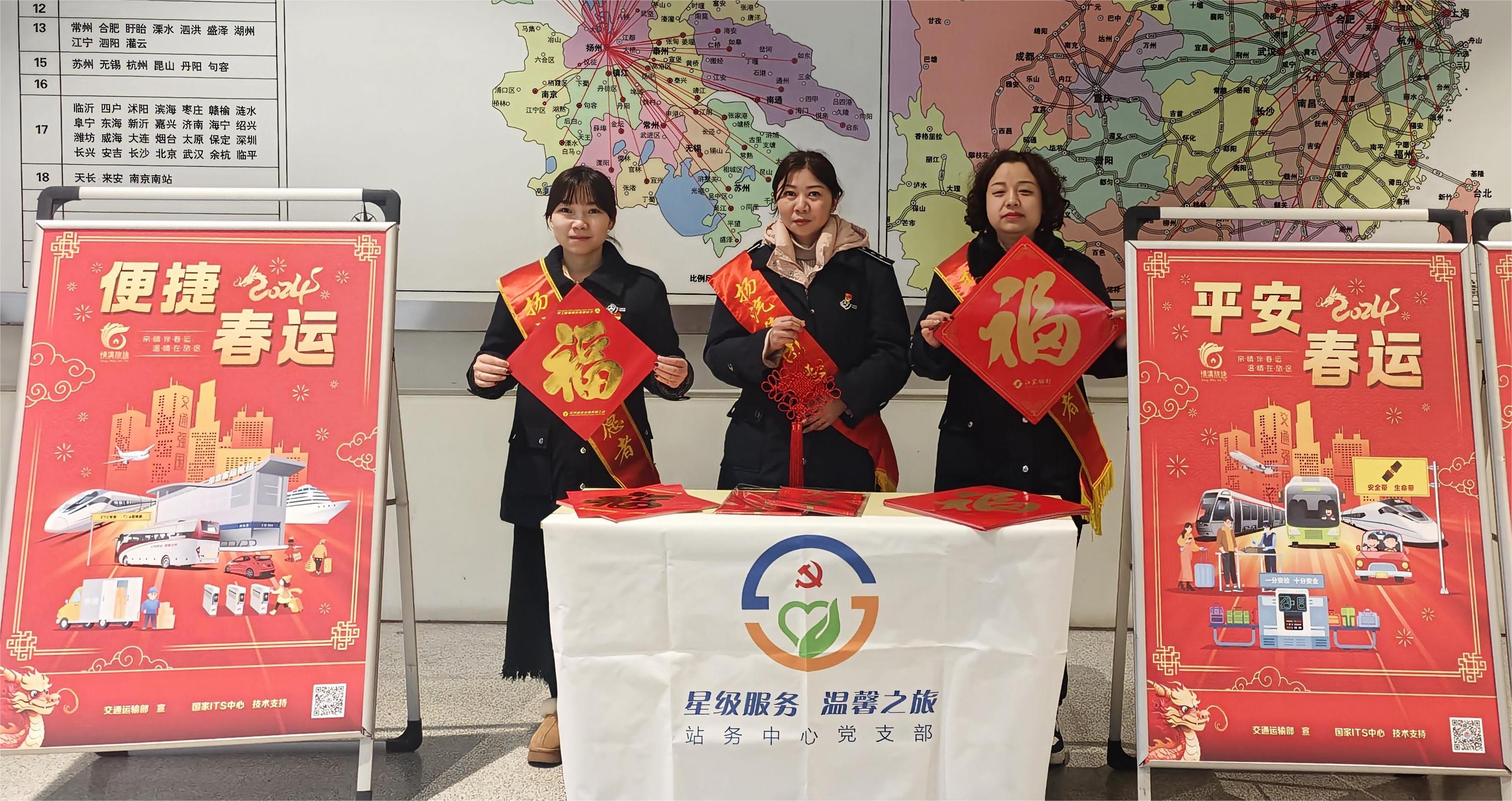 新春佳節(jié)到來(lái)之際,為給廣大旅客送上新春的祝福,增添喜慶祥和的節(jié)日氛圍,2月5日,揚(yáng)汽集團(tuán)站務(wù)中心特別策劃了 “春運(yùn)送福,溫暖旅客歸鄉(xiāng)路”活動(dòng),為旅客送上新春祝福,傳遞溫暖和關(guān)愛(ài)。