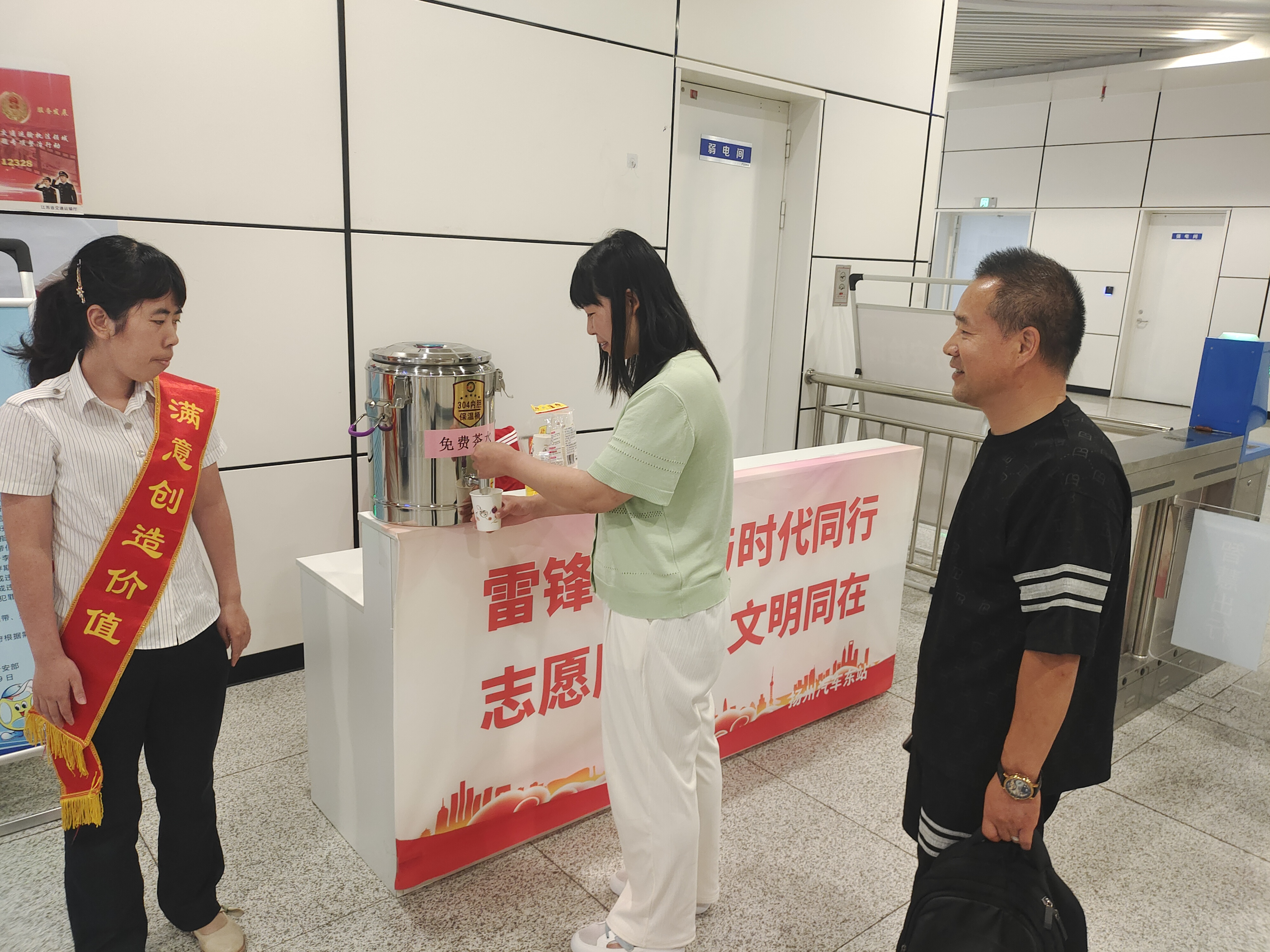 隨著夏季高溫的到來,為給旅客提供便民溫馨的服務,營造舒適旅途,車站工作人員分別在揚州汽車站候車大廳、揚州東站進站口、江都汽車站服務臺設置茶水臺,精心準備了大麥茶、涼茶以及防暑降溫藥品等,黨員同志們更是發(fā)揮帶頭作用,通過雷鋒車將茶水服務實現了移動化,為旅客們帶來身體上的清涼,讓他們感受到心靈上的溫暖。